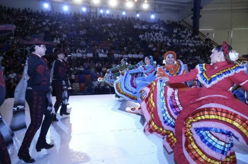 La función inaugural ofreció un recorrido artístico por las tradiciones dancísticas de Jalisco, Guanajuato y Tamaulipas, con estampas que incluyeron jarabes, sones, danzas de a caballo, cuadros huastecos y representaciones llenas de colorido, música en vivo y vestuario tradicional que transmitieron la fuerza cultural de cada región.