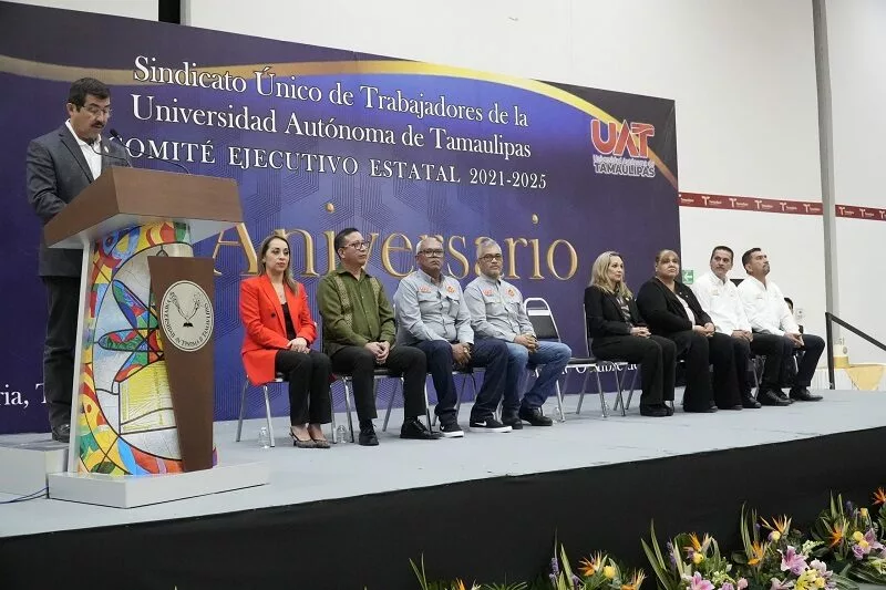 En su mensaje, destacó que, a más de cinco décadas, esta organización sindical ha sido parte esencial del crecimiento, la estabilidad y la fortaleza de la Universidad, subrayando que este encuentro no solo es una celebración, sino un reconocimiento al esfuerzo constante que hace posible que la UAT siga siendo un orgullo para todo el estado de Tamaulipas.