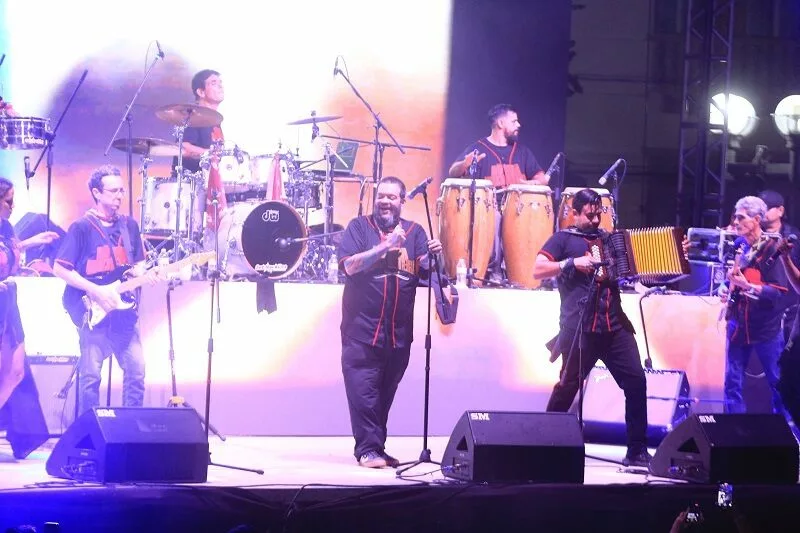 Simultáneamente, en la Plaza Juárez, el ritmo se apoderó de la noche con la presentación de La Ronda Machetera, agrupación nacida de la fusión de La Ronda Bogotá y Pato Machete, que rindió homenaje al inolvidable Celso Piña con un vibrante espectáculo de cumbia y hip hop.