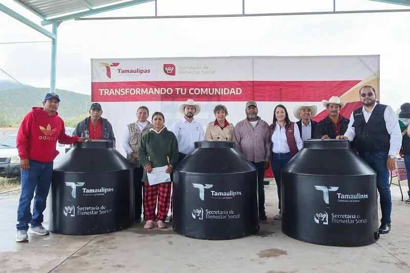 La escuela primaria rural “Lic. Benito Juárez” fue el escenario para que las autoridades y beneficiarios se reunieran y celebraran la llegada de tinacos con capacidad de almacenar hasta 750 litros de agua, que les facilitarán el abasto en esta zona que se caracteriza por escasas precipitaciones de lluvia.