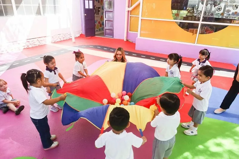 DIF Victoria entrega nuevo patio de juegos con superficie de tartán en su guardería. 15 octubre, 2025