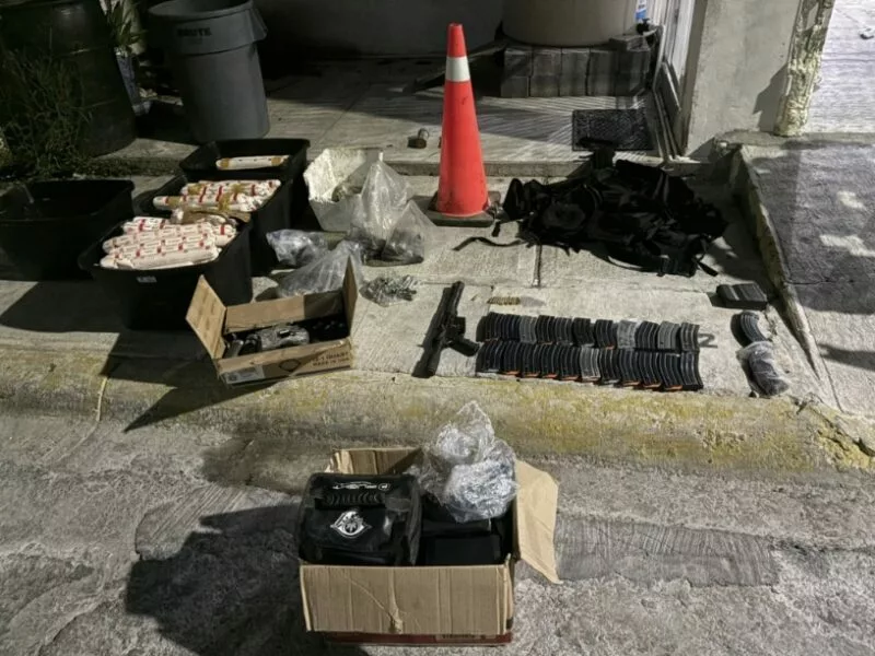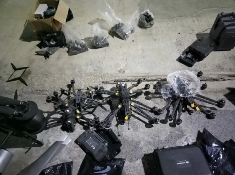 De acuerdo al último reporte presentado por las fuerzas de seguridad nacionales y estatales, además de la detención de un masculino se aseguraron dos armas de fuego, 26 cargadores, 44 cartuchos, 151 objetos explosivos, 18 drones, un detector de drones, tres antidrones y dos artefactos explosivos improvisados.