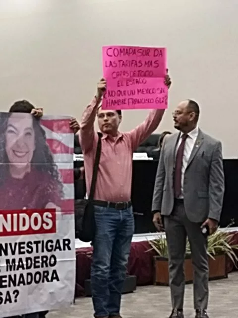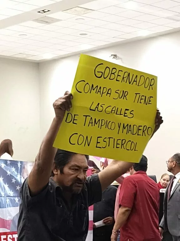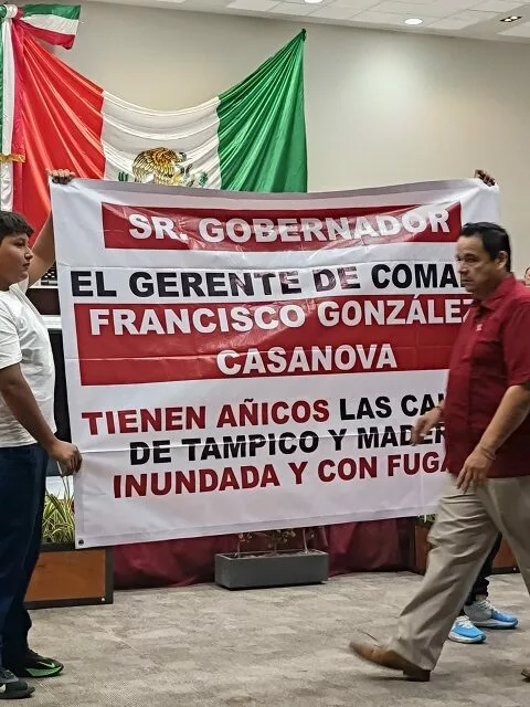 Tampico, Tamaulipas. – Mientras diputadas y diputados abrían la sesión del Congreso Itinerante en Tampico, un grupo de manifestantes irrumpió en el recinto para reclamar al alcalde de Ciudad Madero, Erasmo González Robledo y a la senadora Olga Sosa Ruiz, a quienes acusaron de oportunismo político y del deterioro urbano en la zona sur del estado.