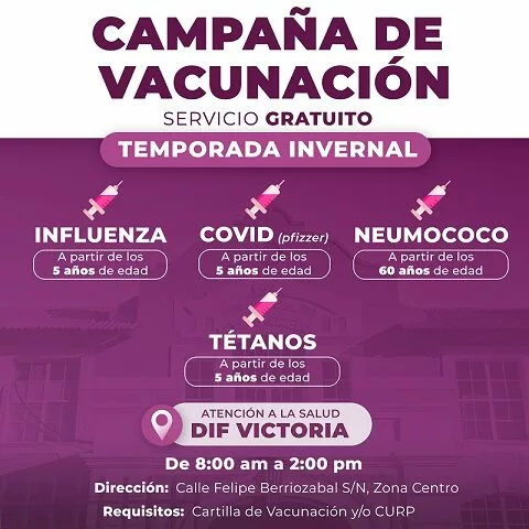 DIF Victoria invita a la ciudadanía a su Campaña de Vacunación Gratuita por temporada invernal 12 noviembre, 2025