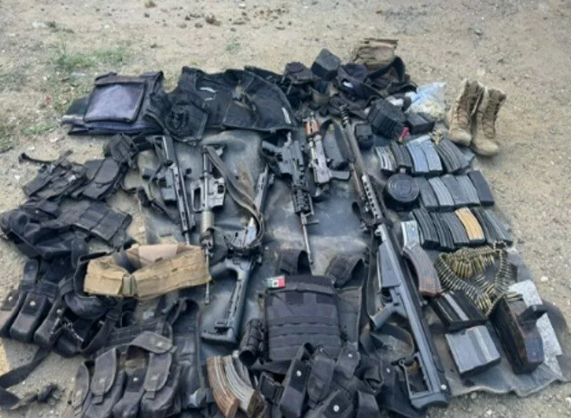 -En San Quintín, elementos del Ejército Mexicano aseguraron dos armas largas, siete cargadores, 700 cartuchos, cinco chalecos tácticos y seis vehículos.