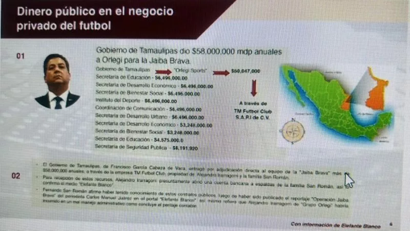 El desfalco al erario tamaulipeco cometido por el gobierno de Cabeza de Vaca, se refiere al gasto en la promoción de la imagen institucional, canalizadas a diversos proveedores, entre ellos el Tampico-Madero Futbol Club S.A.P.I. de C.V., bajo el argumento de servicios de publicidad y difusión.