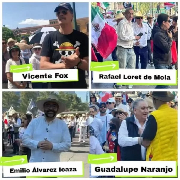 Como siempre no fue una marcha apartidista y mucho menos de gente joven sino todo lo contrario, se dejaron ver personajes de la oposición, es decir; de chile, dulce y de manteca como Acosta Naranjo del ex PRD, Álvarez Icaza disque defensor de los derechos humanos, el padre de Loret de Mola, periodista de lo más violento, y hasta el expresidente Vicente Fox, Pedro Ferriz, entre muchos otros y otras, todos cortados por la misma tijera.