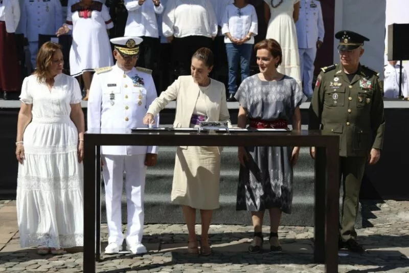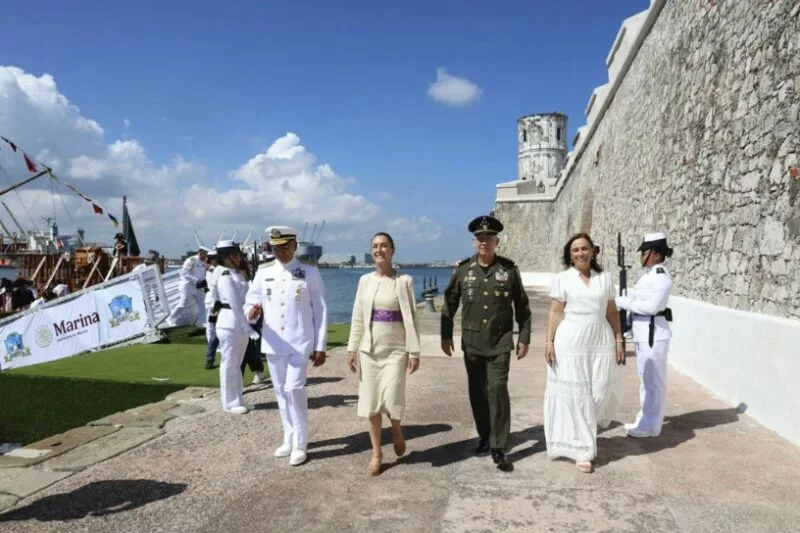 Por ello dijo que, en un día histórico como hoy, en los que se conmemoran 200 años de la Independencia en la Mar, también se celebra a la Armada de México: su entrega diaria, su disciplina, su valentía y su vocación de paz, que honran la memoria de Pedro Sáinz de Baranda, así como de héroes y heroínas que actualmente hacen posible la libertad.