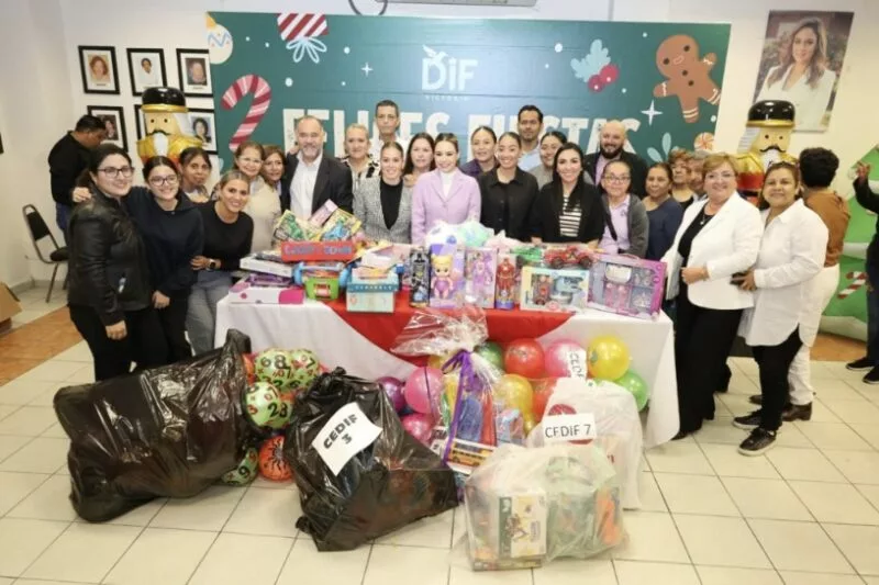 Cd. Victoria, Tamaulipas .- Porque un juguete es una sonrisa para un niño, la presidenta del Sistema DIF Victoria Sra. Lucy de Gattás y el alcalde Eduardo Gattás Báez pusieron en marcha la colecta de juguetes navideños “Ayudemos a Santa 2025”.