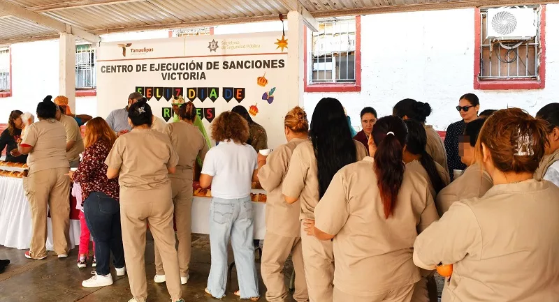 Ciudad Victoria, Tamaulipas.- Siguiendo la tradición anual en el Centro de Ejecución de Sanciones (CEDES) de Ciudad Victoria, personas privadas de la libertad (PPLs) y sus familias compartieron una mega Rosca de Reyes, elaborada por la población penitenciaria laboralmente activa en el área de panadería.