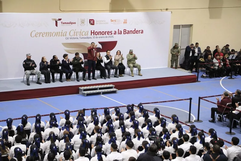 Ciudad Victoria, Tamaulipas.– El gobernador de Tamaulipas, Américo Villarreal Anaya resaltó el papel trascendental de la educación y del magisterio en la formación de una sociedad más humana, justa y con visión de futuro, al presidir la Ceremonia de Honores a la Bandera en la Benemérita Escuela Normal Federalizada de Tamaulipas.
