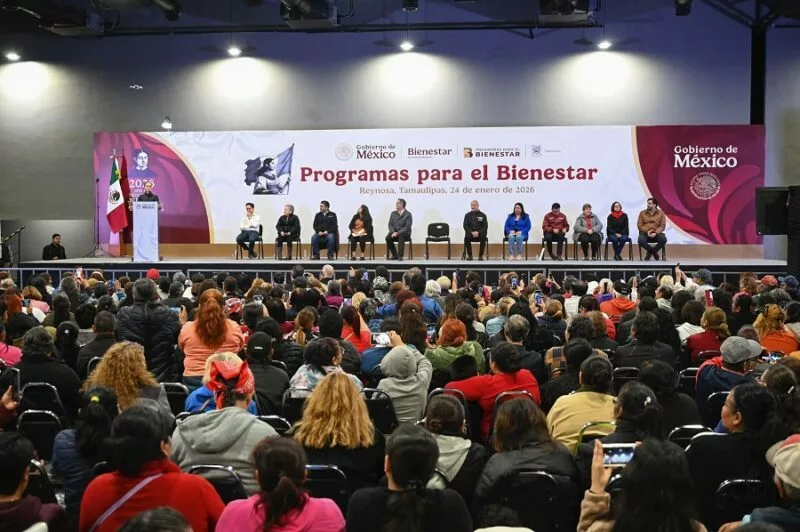 Reynosa, Tamaulipas.- Desde Reynosa, Tamaulipas, la Presidenta de México, Claudia Sheinbaum Pardo, destacó que cuando se elimina la corrupción, alcanza para realizar más acciones. Por ello, anunció que en el estado se implementan los Programas para el Bienestar que benefician a 816 mil personas, se repavimentarán 407 kilómetros (km) de carreteras federales, se construirá el Bachillerato Tecnológico Plantel Reynosa y se crearán nuevos puentes, así como obras en materia de agua y el tramo Saltillo-Nuevo Laredo del Tren del Golfo de México.