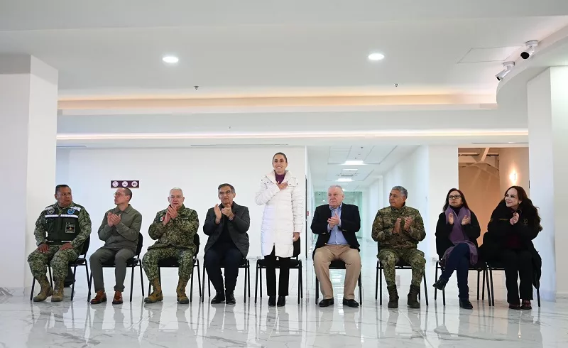 Se trató de una obra desarrollada desde una visión integral en 29 hectáreas con 320 mil metros cuadrados de construcción, generando más de 3 mil 700 empleos directos y 7 mil indirectos. Detalló que el edificio principal tiene capacidad de mil 100 personas y cuenta con 600 viviendas para trabajadores y sus familias, así como espacios de recreación. Agregó que a esta obra se suma la construcción, por parte de la Defensa Nacional, de siete secciones aduaneras en Baja California, 12 en Sonora, nueve en Chihuahua, cuatro en Coahuila y 16 en Tamaulipas, que concluyeron en 2024 y que están equipadas con aparatos de última tecnología como detectores de mercancía para evitar contrabando, laboratorios móviles de hidrocarburos, rayos X móviles, ferroviarios, vehiculares y para maletas.