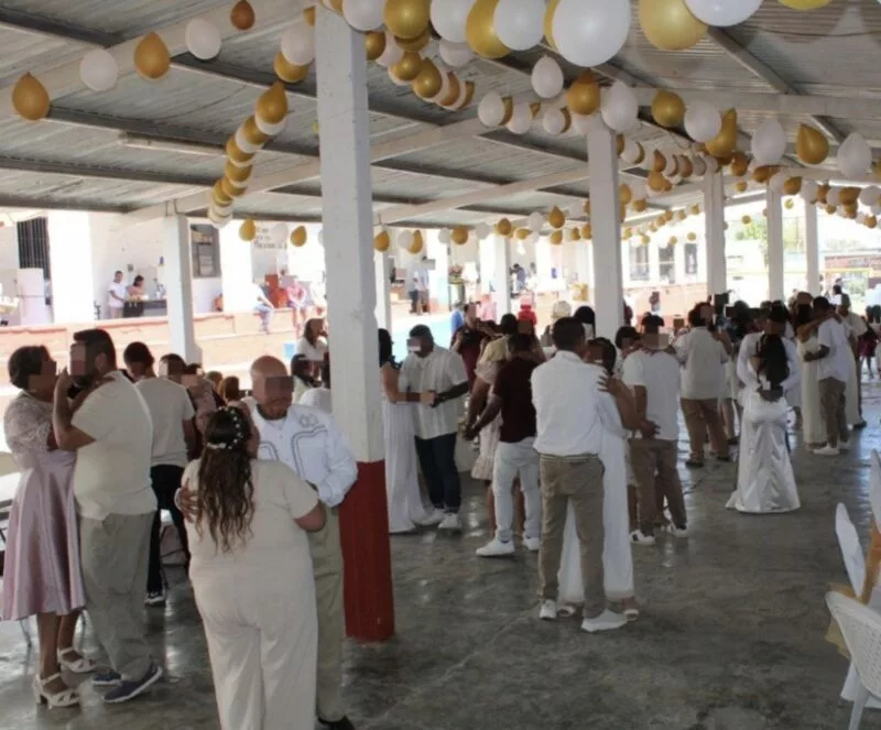 Ciudad Victoria, Tamaulipas.– Con base en el respeto a los derechos de las personas privadas de la libertad (PPLs) y en la estrategia de reinserción social, que tiene a las relaciones familiares entre sus ejes fundamentales, 21 parejas formalizaron su unión al interior del Centro de Ejecución de Sanciones (CEDES) de Ciudad Victoria.