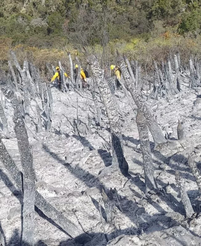 El coordinador estatal de Protección Civil, Luis Gerardo González de la Fuente, informó que en estas acciones participan 69 elementos de distintas corporaciones y brigadas, quienes realizan trabajos de combate directo, vigilancia y liquidación para evitar la propagación del fuego y proteger la zona forestal.