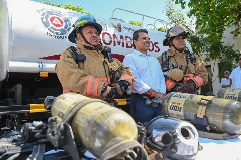 Cd. Victoria, Tamaulipas. – El presidente municipal de Victoria, Eduardo Gattás Báez, entregó este día equipo especializado y camión cisterna a la Coordinación de Protección Civil y Bomberos para la atención rápida y eficiente de emergencias o siniestros que pongan en riesgo a la población.